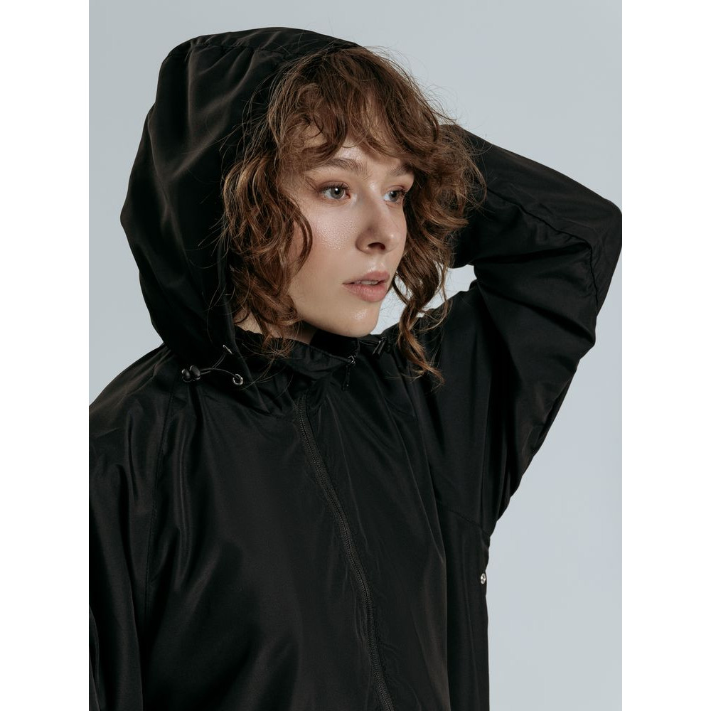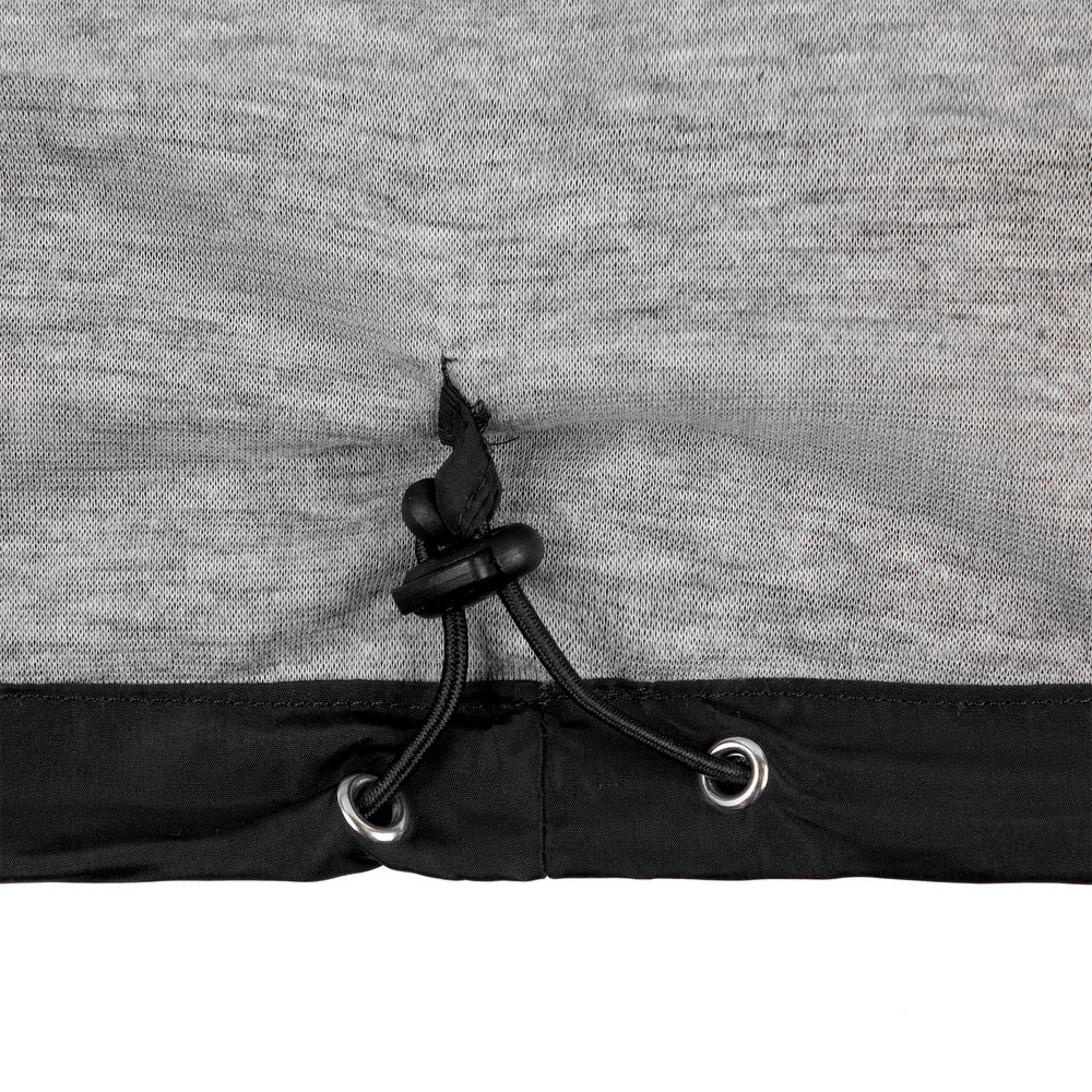 • Кулиска с эластичной резинкой по краю капюшона, по низу изделия и по горловине воротника изделия