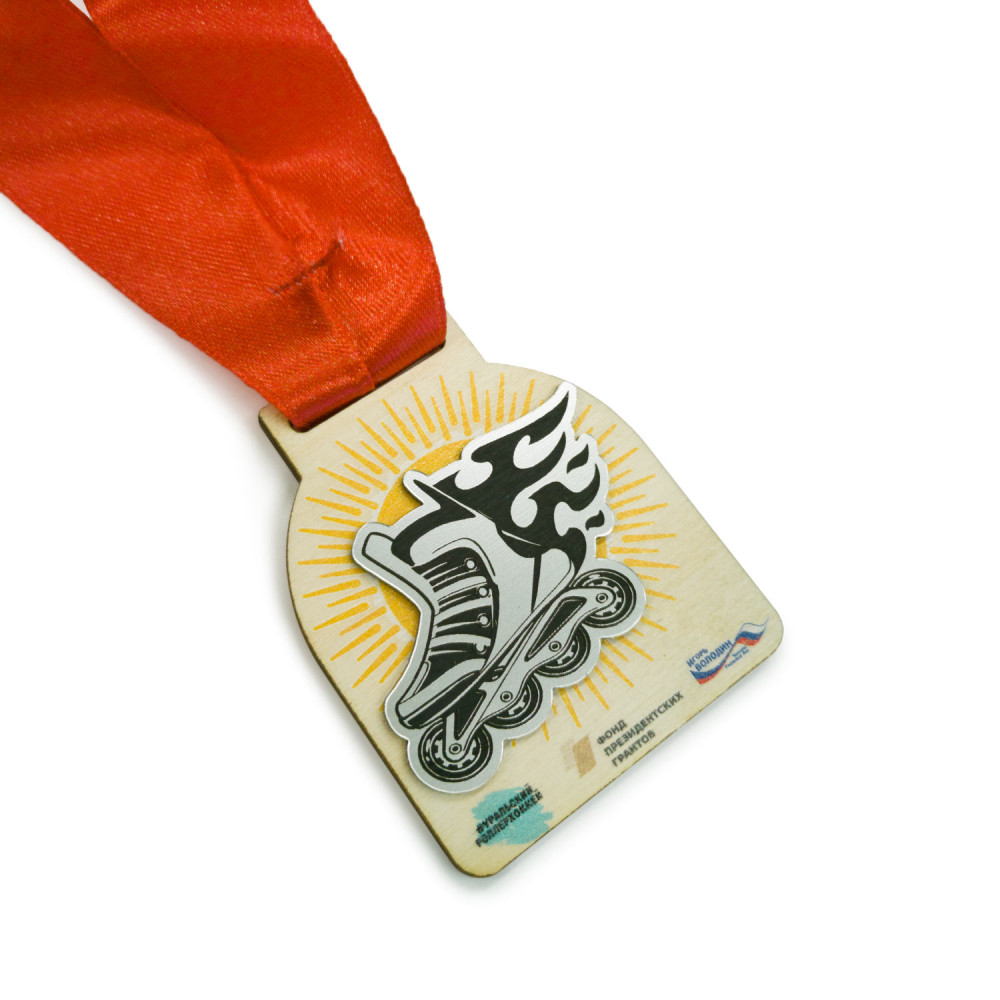 • Медаль из дерева с пластиком 2-слойная, с УФ-печатью