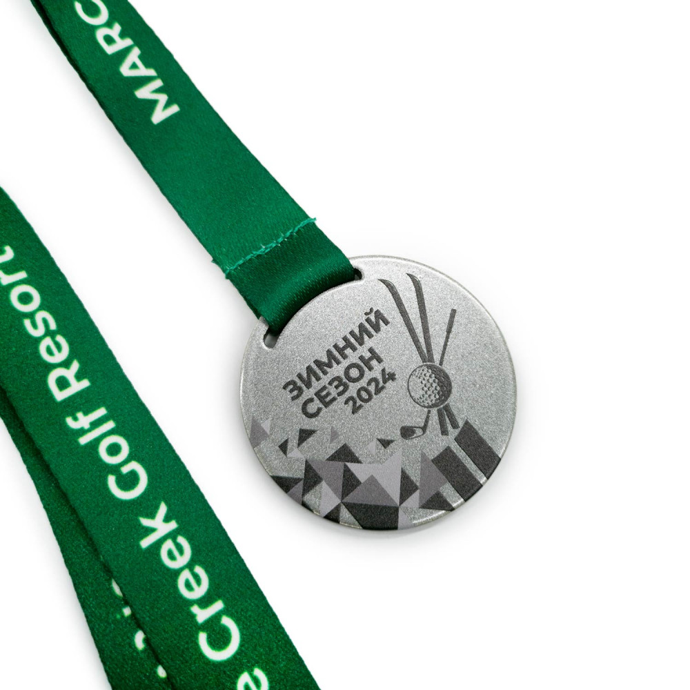 Важной особенностью этой медали является полноцветная печать. Благодаря использованию передовых технологий цифровой печати, на медали можно нанести яркий и детализированный полноцветный рисунок, логотип, текст или изображение. Это позволяет создавать уникальные дизайны, которые идеально подходят для отображения логотипов компаний, спортивных эмблем, гербов, фотографий или любых других изображений, которые вы желаете использовать для признания или отметки достижений.