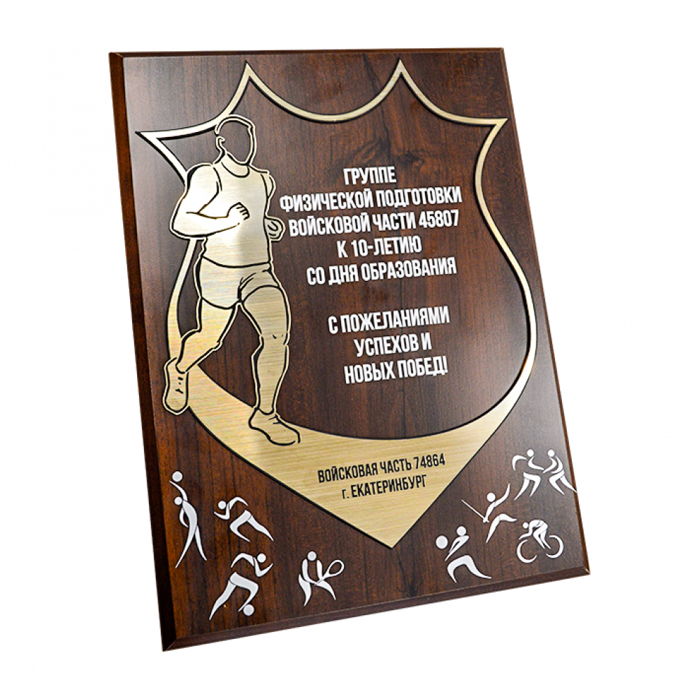 Размеры плакеток стандартные, 6 вариантов от 17х12 см до 33х27 см. Наиболее популярный размер 31х23 см (соответствует формату А4).