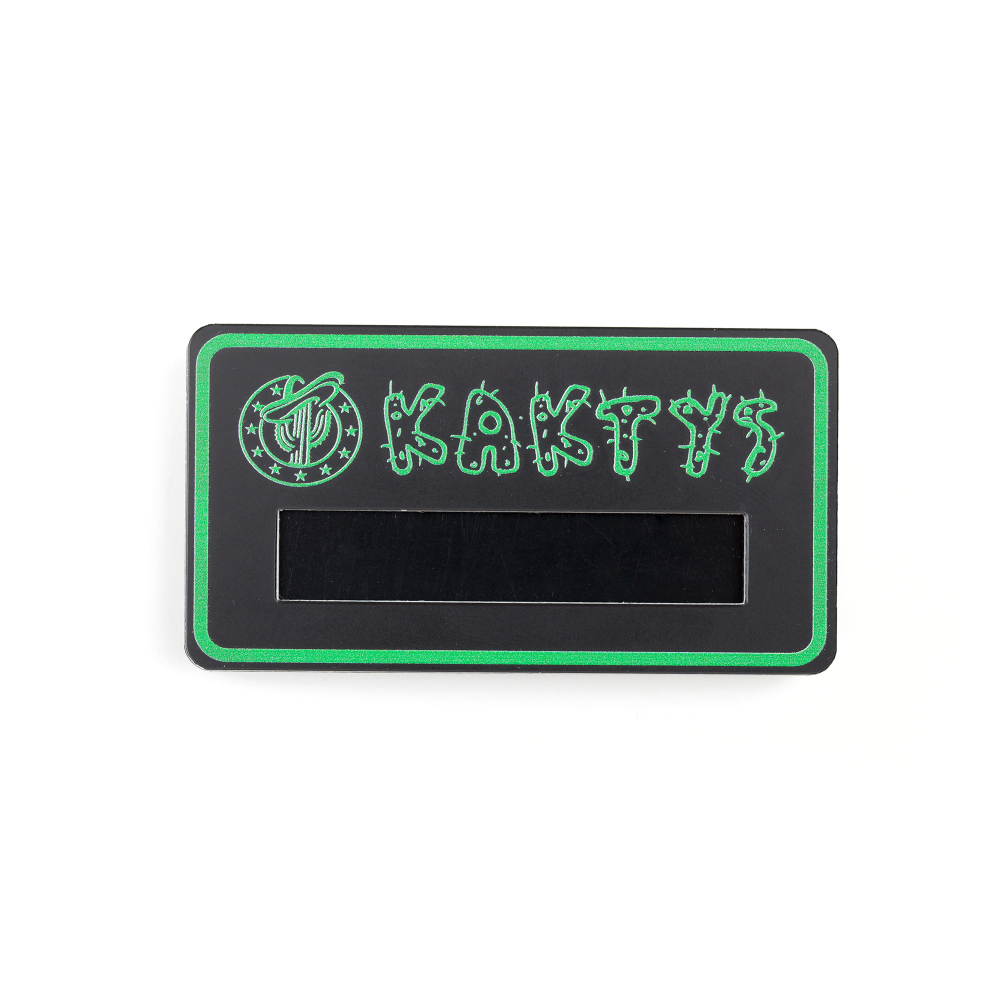Материал бейджа – прозрачный или цветной акрил. Это практичный материал, стойкий к загрязнению и воде. Преимущество этого варианта – большой выбор цветов и оттенков акрила.