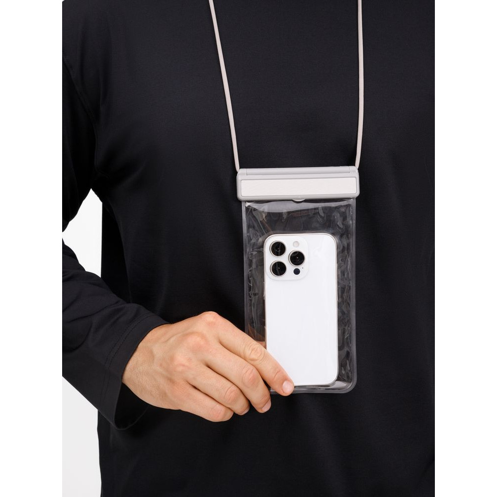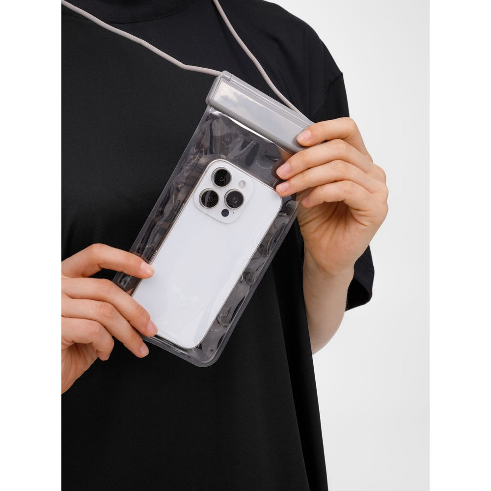 Прозрачный водонепроницаемый чехол для телефона Aqualock — отличный выбор для активного отдыха, спорта и путешествий. Его можно взять в бассейн или на пляж: высокопрочный ПВХ создает герметичный барьер против брызг, песка и пыли, при этом позволяя с удобством пользоваться смартфоном в чехле. Также подходит для хранения документов, денег и карт.