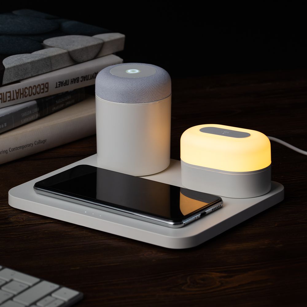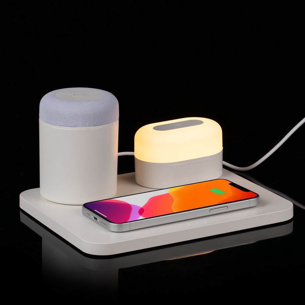 • Станция беспроводной зарядки с колонкой и ночником Trilogy, белая