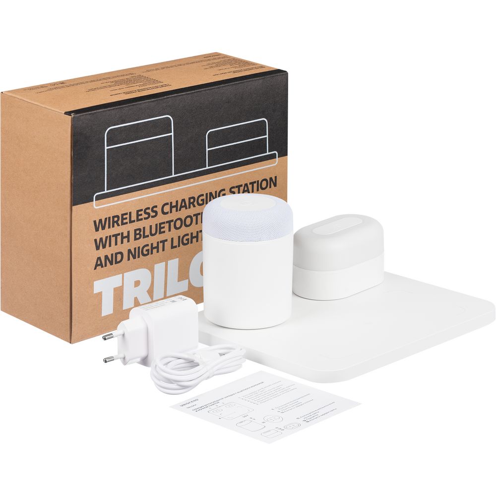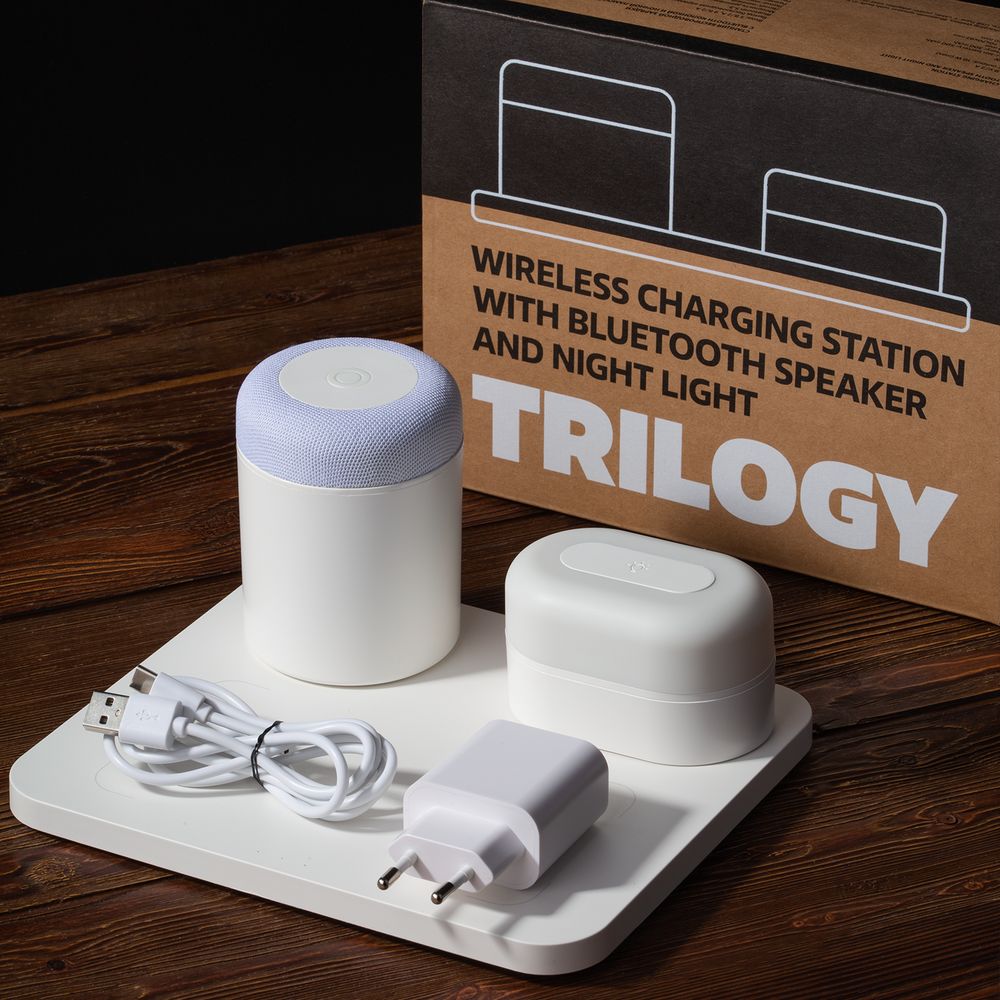 Станция беспроводной зарядки с колонкой и ночником Trilogy, белая