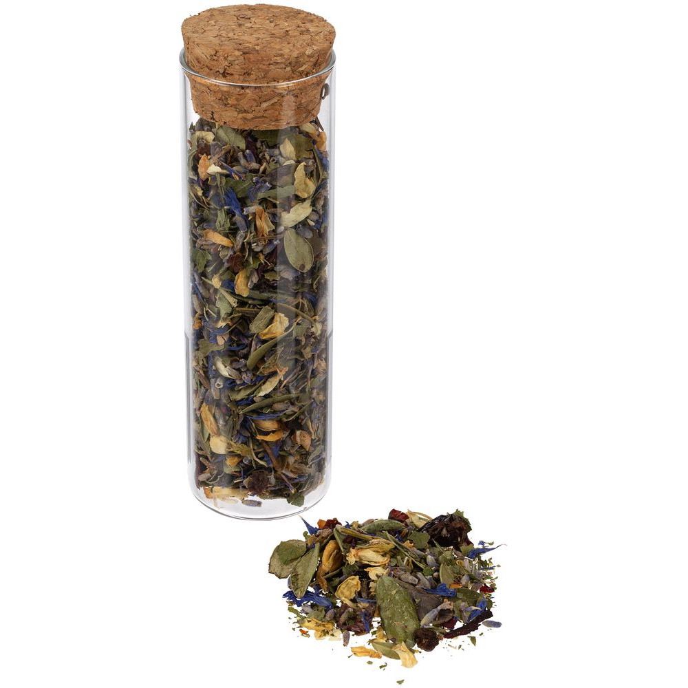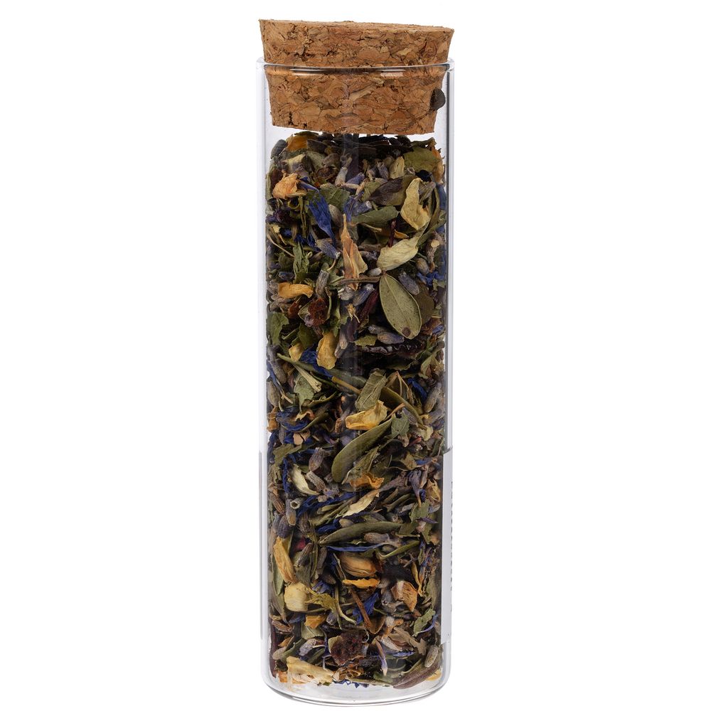 • чай травяной «Горная лаванда» (состав: цветы лаванды, цветы жасмина, шалфей, толокнянка, шиповник, ягоды шелковицы, лепестки василька, каркаде), вес 20 г;