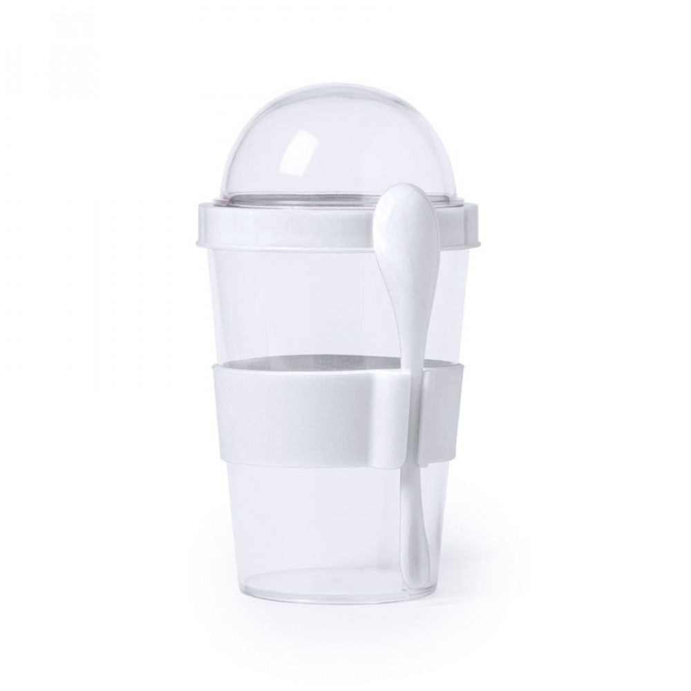 Параметры: Контейнер для еды YOPLAT с ложкой, белый, 420 мл, 16,3х9см, пластик