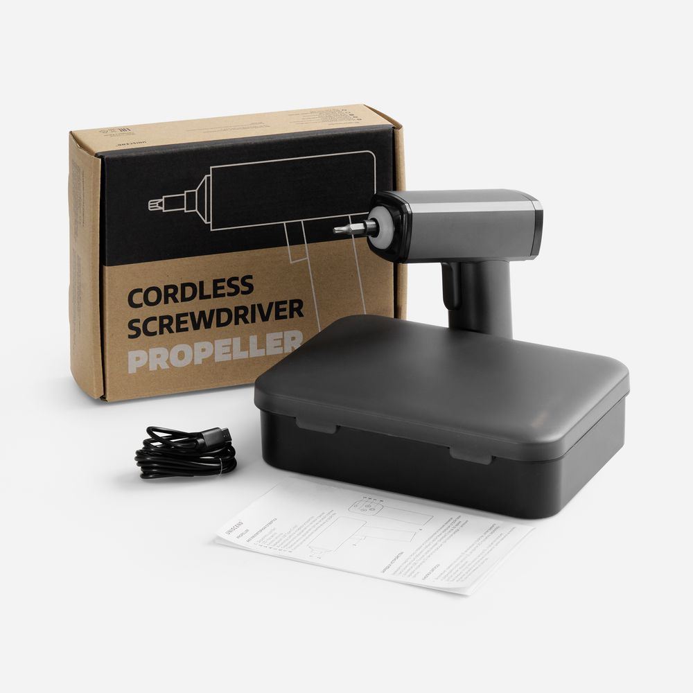 Отвертка Propeller — ваш незаменимый помощник в доме. Cтильная и эргономичная, она идеально подходит для мелкого ремонта, сборки мебели, крепления полок и других бытовых задач. Ее удобно держать в руке: она легкая, но при этом достаточно мощная, чтобы справляться с повседневными задачами без усилий.