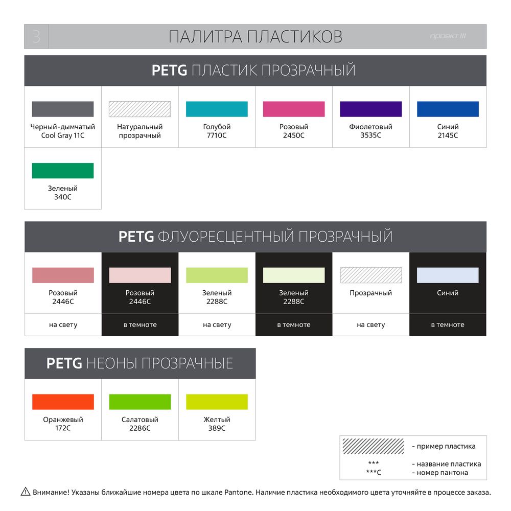 - Цвет и тип пластика. Варианты цветов можно посмотреть в разделе «Фотографии».