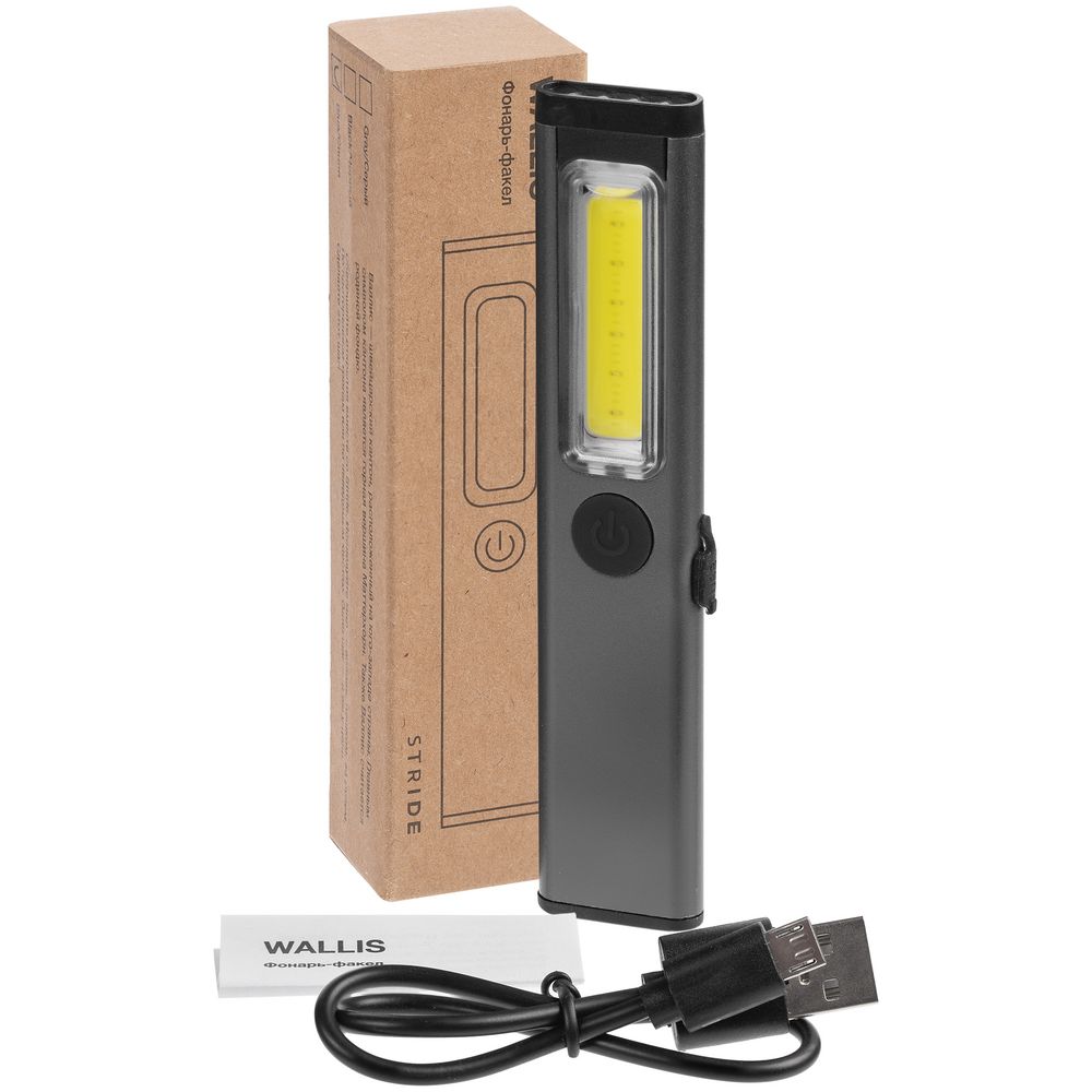 Фонарик-факел аккумуляторный Wallis с магнитом, серый
