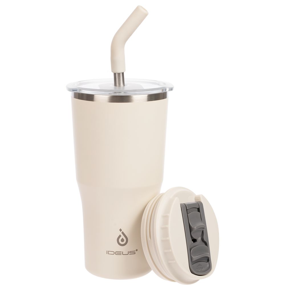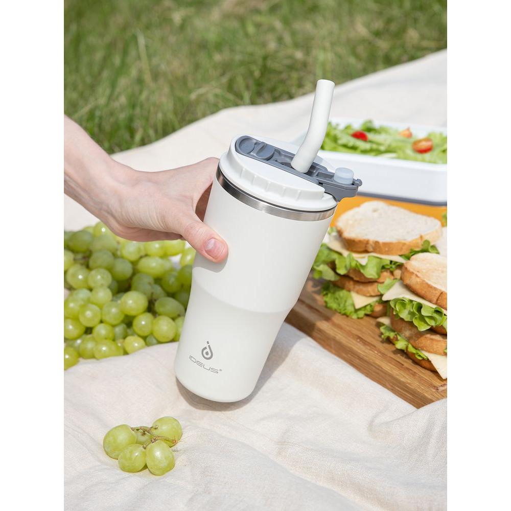 • 2 крышки в комплекте: одна на 100% герметичная с механизмом блокировки отверстия для питья, вторая — с отверстием для трубочки