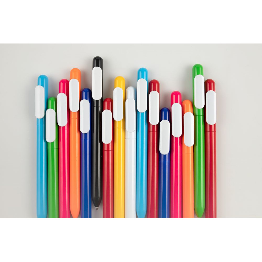 Ручка из глянцевого пластика с белым клипом.